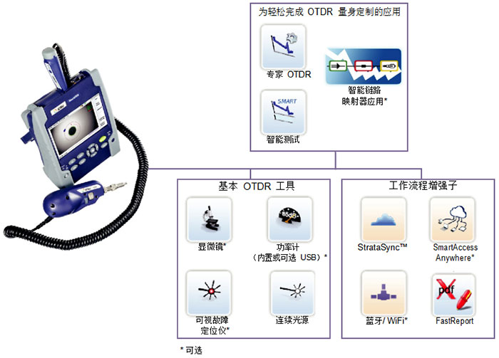 輕巧緊湊的SmartOTDR擁有量身定制的OTDR接口,并能實(shí)現(xiàn)任何技術(shù)人員都能理解的自動(dòng)分析,可加快并優(yōu)化城域網(wǎng)和接入網(wǎng)的現(xiàn)場(chǎng)測(cè)試。