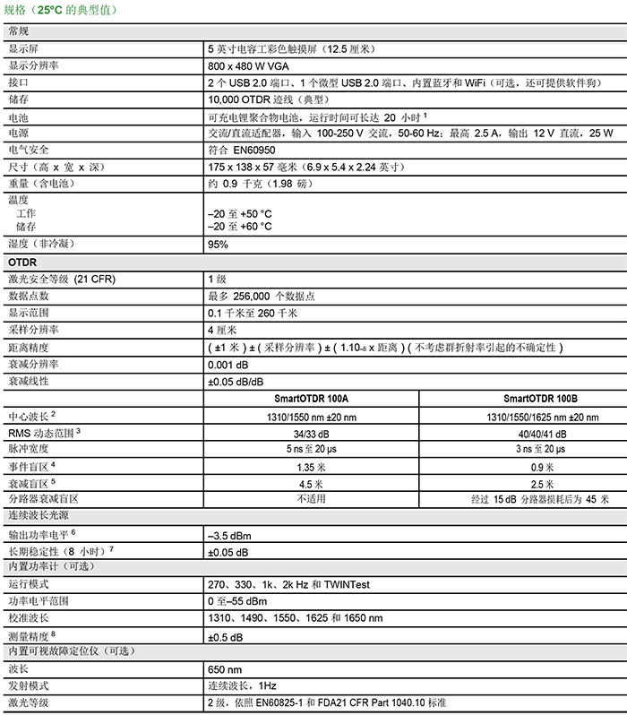 5.使用FC/UPC類(lèi)型反射和最短脈沖寬度,在線(xiàn)性回歸±0.5 dB處測(cè)量。